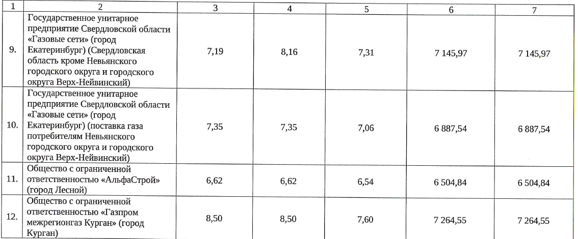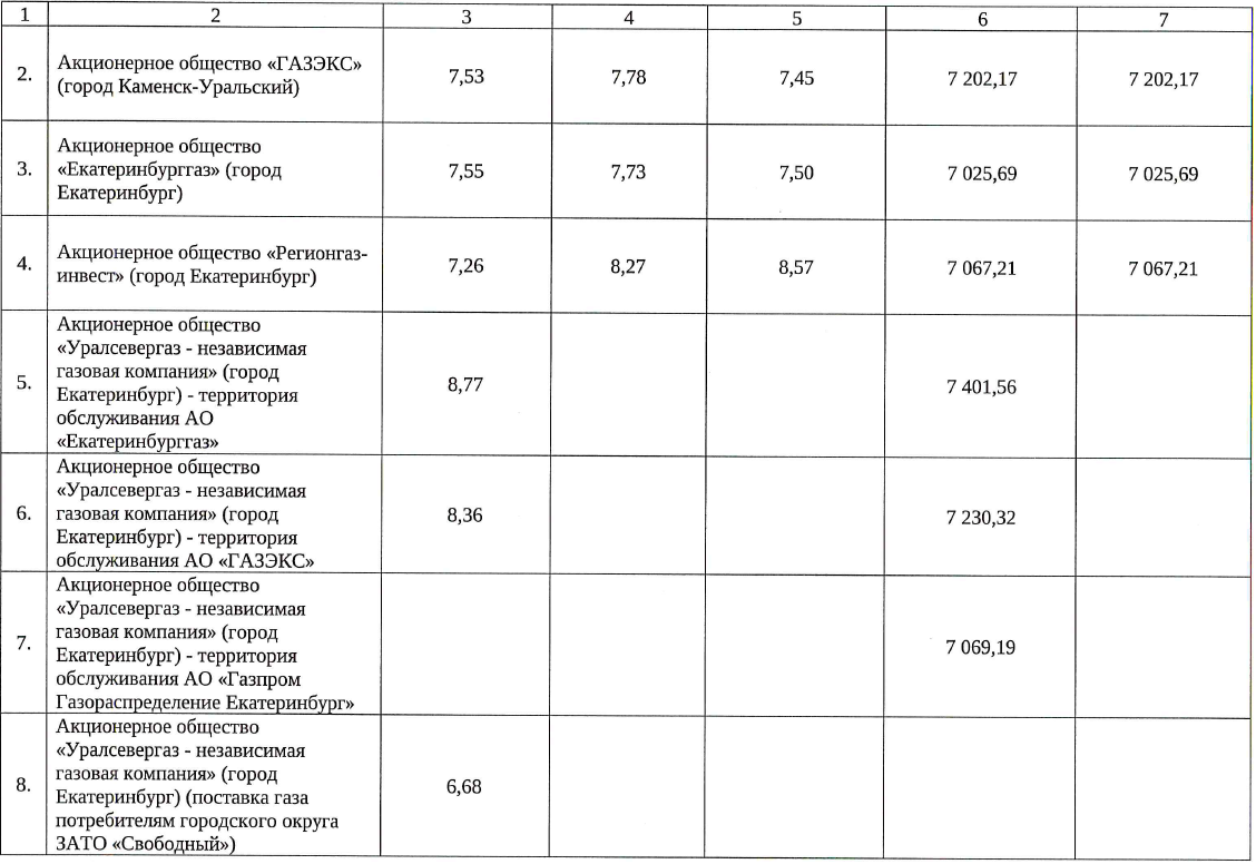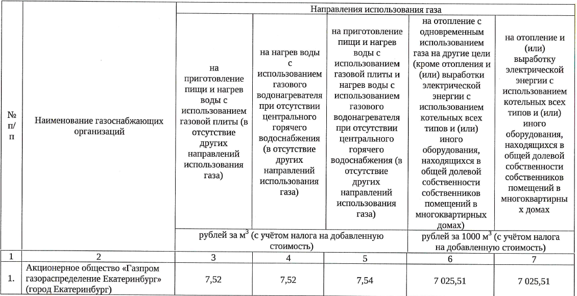 Постановления РЭК Свердловской области об установлении розничных цен на газ